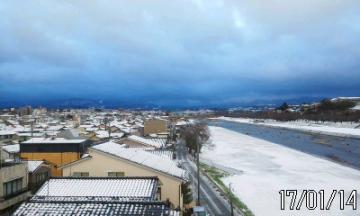 雪の犀川&ラジオ体操済み余裕活動頑張る