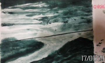 29日連続水墨願彩画描き早朝ラジオ体操継続中