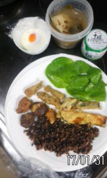 玄米100古代黒米赤しそ黒入りごま無臭ニンニクゴボウ人参大根ねぎ玉ねぎ大豆もやし椎茸えのきカボチャとろろ昆布もずく生姜キャベツ海藻あおさ煮干ジャワカレー入り23品目