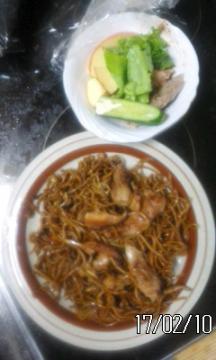 マグロ椎茸焼きそば野菜果物いか健康料理家生