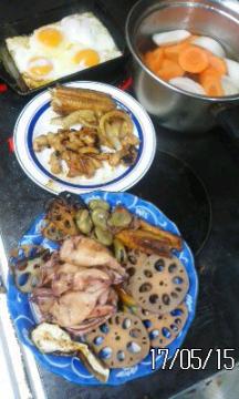 健康料理家ホルモンいかレンコン空豆他