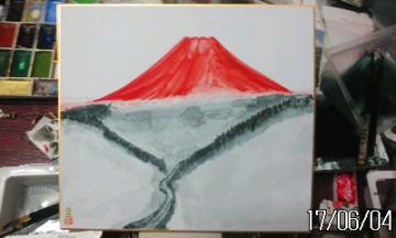 菱形赤富士 山水願彩画色紙&ヘルニア工夫他