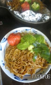 焼きそばブロッコリーとまとねぎ料理&