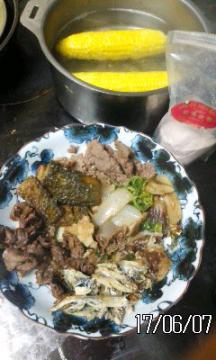肉ゴーヤ椎茸シシャモトウモロコシ