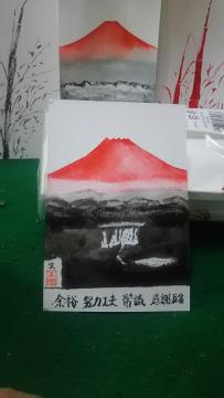 赤富士滝川湖願彩水墨画生描立て