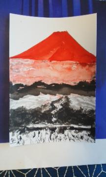 赤富士山々山河湖滝願彩水墨画生の創作描き立て