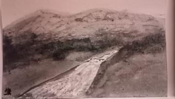山水 水墨画 生の創作描き立て&今日は活動労働した活動労働でき有難い