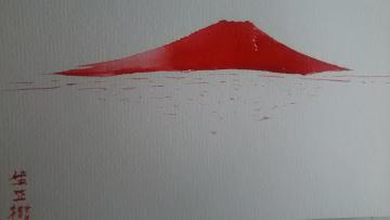 紅梅富士願彩画生の創作描き立て