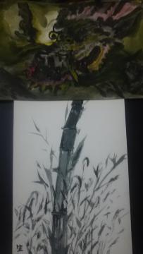 水墨画竜 真竹 生の描き漸く生に春がトラブルは有るが良い出会事増加