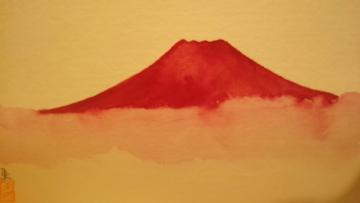赤富士 願彩創作描きたて スーパー休憩コーナーで 店内巡回 新鮮ふくらぎ買ったティータイム 休憩ほか◎(^_^)v