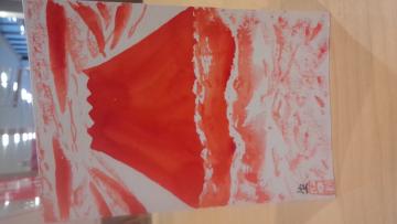 ◎鮒◎赤富士 願彩描きたて スーパー生きている鮒買った生料理 スーパー買い物 絵手描き 無料緑茶time 休憩 有難い