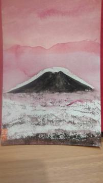 ◎(^_^)富士山水墨・願彩画描きたて& スーパー休憩コーナーで休憩中幸せ◎(^_^)v