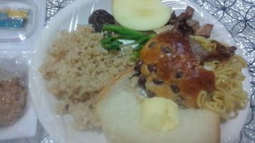 美味し昼食○上ナンコツ能登・大納言小豆・椎茸能登フランスパン半額買○春菊夕市生姜無料玄米根昆布ライス(*^^*)リンゴ・昆布子の小遣い買 チーズ納豆広告品