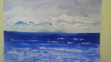 海に浮かぶめ 願彩画 創作描きたて 幽玄の美追求 8時頃描き