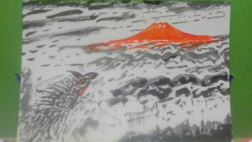 長寿鳳凰富士山 創作描きたて 自分の体に植物が生えるまでも長生きする架空の大鳥