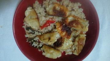 幸せ**昼食◎宇都宮餃子広告品○いわし煮パブリカ○玄米①出し昆布②カツオ人参ピーマン唐辛子ネギ ①②子の小遣い