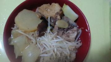 生の料理夕食◎天然ぶり大根椎茸タマネギ生姜モヤシねぎ煮物美味しい◎生の炊きライス玄米・ガスエビ・小松菜・丸金エノキ・唐辛子・タマネギ・生姜・モヤシ・ごぼうライス美味しいジ