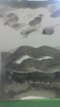 山系 雲 水墨創作描きたて幽玄の美追求