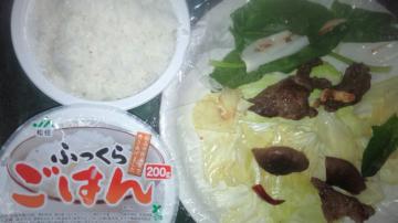 美味しい美味しい昼食◎肉北海道◎無臭ニンニク・椎茸・金沢唐辛子・玉葱(全てウイルス・コロナ効能)◎キャベツねぎホウレンソウ◎美味しいレンジライス