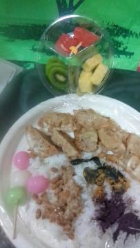 ☺夕食美味しい☺餃子◎納豆◎なすからし漬 赤シソ☺果物果物◎三色団子◎節金買い物◎(^_^)vは生きる◎(^_^)v