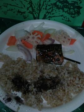 ☺健康昼食☺サバ色付け(spare)生の分カキ貝能登一房(spare造血1)・色付(化学調味料使用なし)◎レンコン・玉ねぎ・レッド玉ねぎ・人参・大根生のカット生野菜◎玄米 赤シソ粉