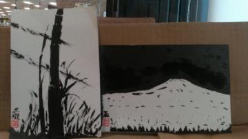 水墨画①雪富士②竹風創作描き立て幽玄の美追求 絵は癒し marketにて 買い物・巡回情報収集兼ねウォーキング済