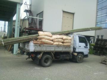 2t 車ですけど、竹に 杭に 堆肥に パーライトに 肥料です