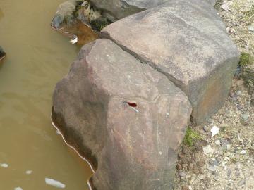 石の上で休んで水が流れるのをじっと見つめているご様子。