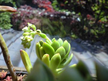 親多肉の先からひょろろ〜んと伸びて。驚きと感動です。すごいね〜