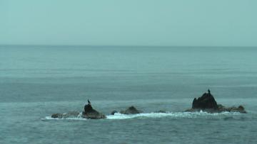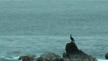 岩に羽根を休める鳥は? 海鵜でしょうか?