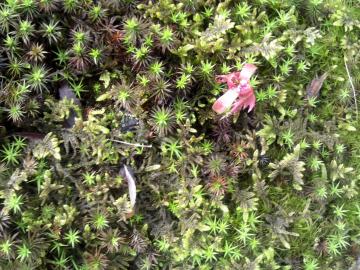 緑の苔の中にひょこんと赤色赤ちゃんなり〜