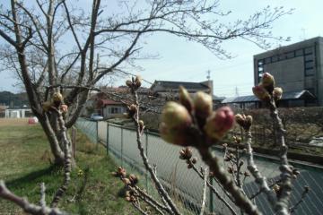 裏の小学校のグランドの桜が気になってチェック。