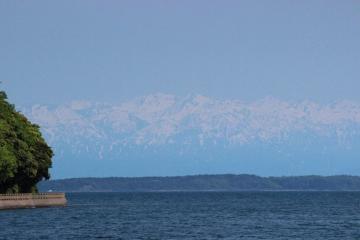まばゆいお日様との邂逅に始まり、澄んだ空気は海のその向こうに山並みが浮かんでます。