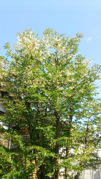 翌年その木に清楚な白い小花は、まるでシャンデリアのように青空をバックに感動の開花を見せてくれた。