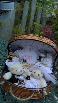 すみません。お庭じゃなくて、可愛い子供達の完成です。熊ちゃんファミリーです。既に一組の熊と兎カップルはお嫁に行っちゃいましたが。