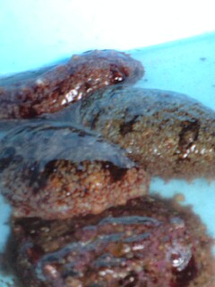ちなみに手前一個がアワビで、その向う3つは、なまこくんです!!!!!