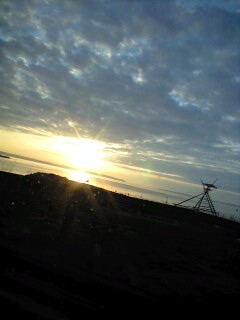 いつもの穏やかな朝日に照らされた海とボラ待ちやぐらに見送られて、行って来ます('-^*)/