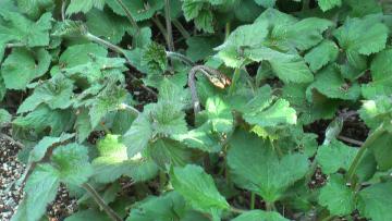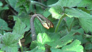 なんと、なんと、秋明菊の花壇の中に、「わらび」発見!