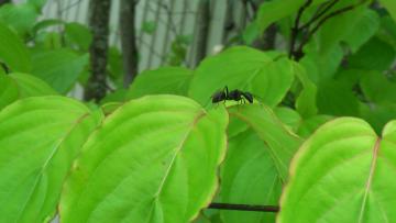 朝早くから、ヤマボウシの葉の上では、ありんこがお散歩のご様子!
