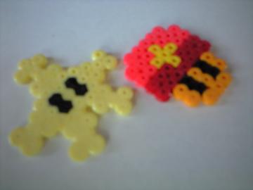 ブロックで作ってアイロンで接着。スーパーマリオのキノコとスターだとか?