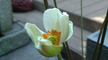 純白の秋明菊は咲き始めたのに、この暑さでどうしていいのか迷ってるご様子?
