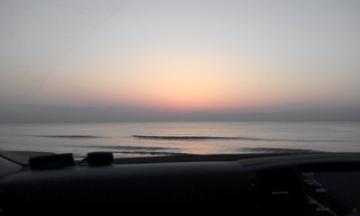 ロマンティック!千里浜なぎさドライブ走行。夕陽に釣られて途中下車。お通夜に金沢です。