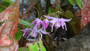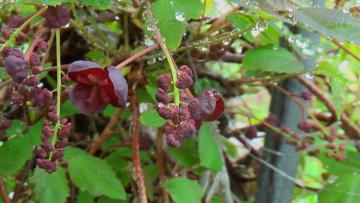 濃紫の愛おしいアケビの花には、優しく微笑んで