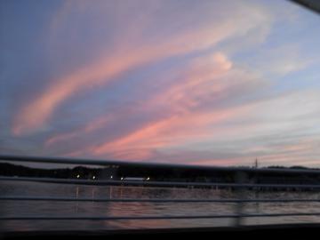 薄水色の空に筆で一撫でしたような雲は、薄桃色と茜色。