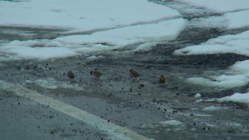 雀さん達! 何があるのか一斉に飛んできて、俯きで何か必死!