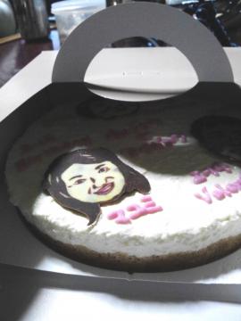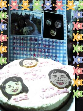 なんと、似顔絵入りケーキです。娘が旦那さんの、誕生日に焼いた似顔絵ケーキ1号は、写メで見たことありますが