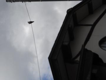 電線に留まって、こちらを覗くあなた様?何か善いもの見つけた?