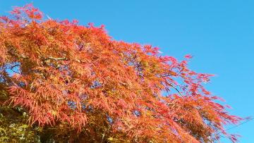 スキップしてしまいそうな、まっさらな空と薄紅葉…