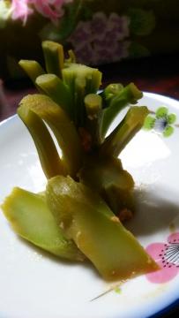ウド?みたいです?奥の樹木みたいのでブロッコリーって判っちゃうかな。味噌の香りがぷーんとして中はシヤキッって!いい感じ(。^。^。)