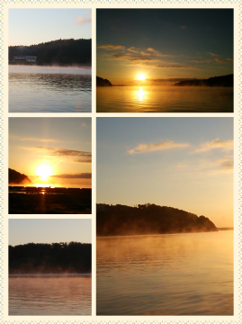 強く雄々しいお日様のしたでは、穏やかな海面から湯気?ご一面に天に向かって一斉に緩やかにそして確実にふんわりとたおやかに